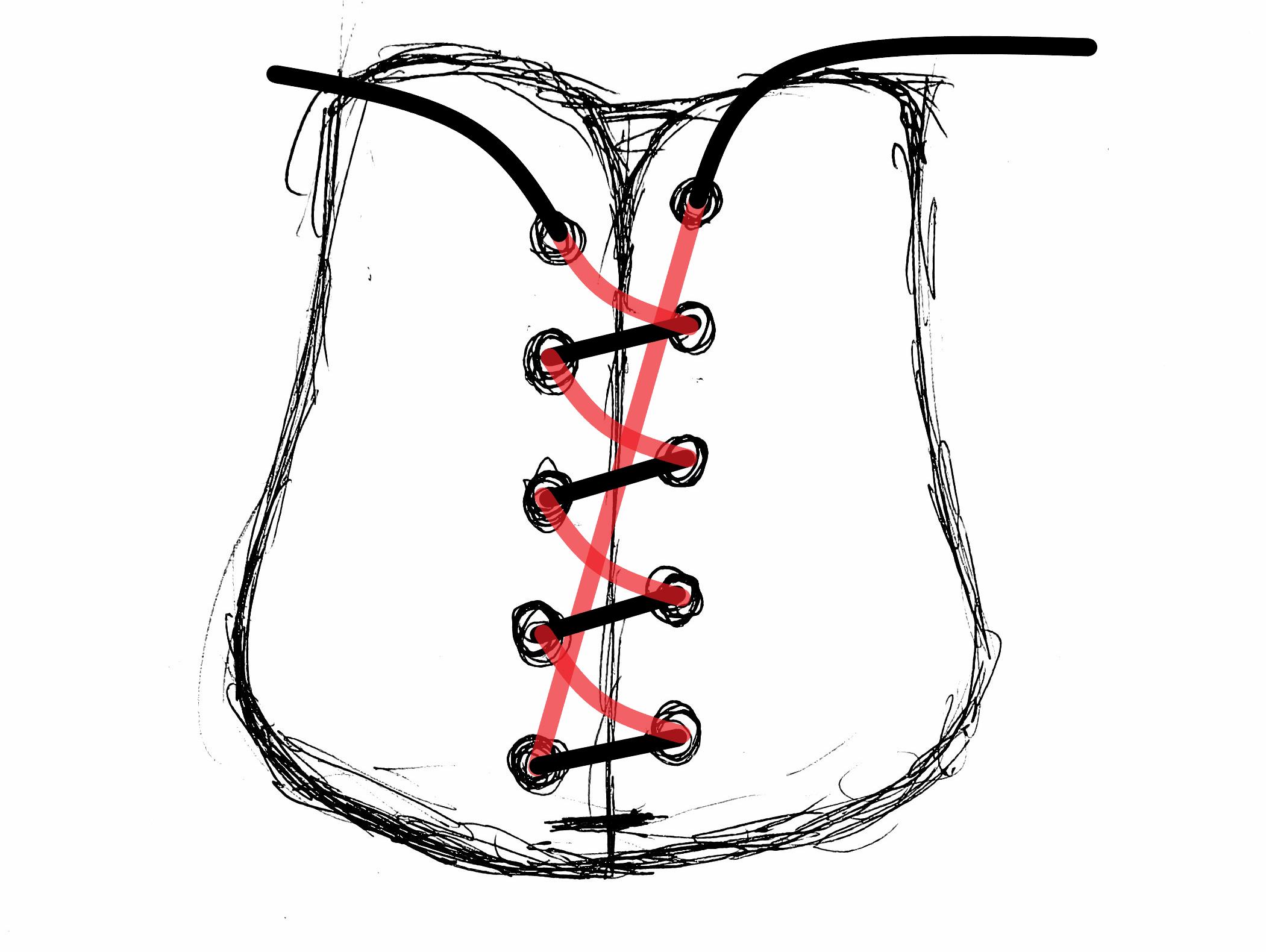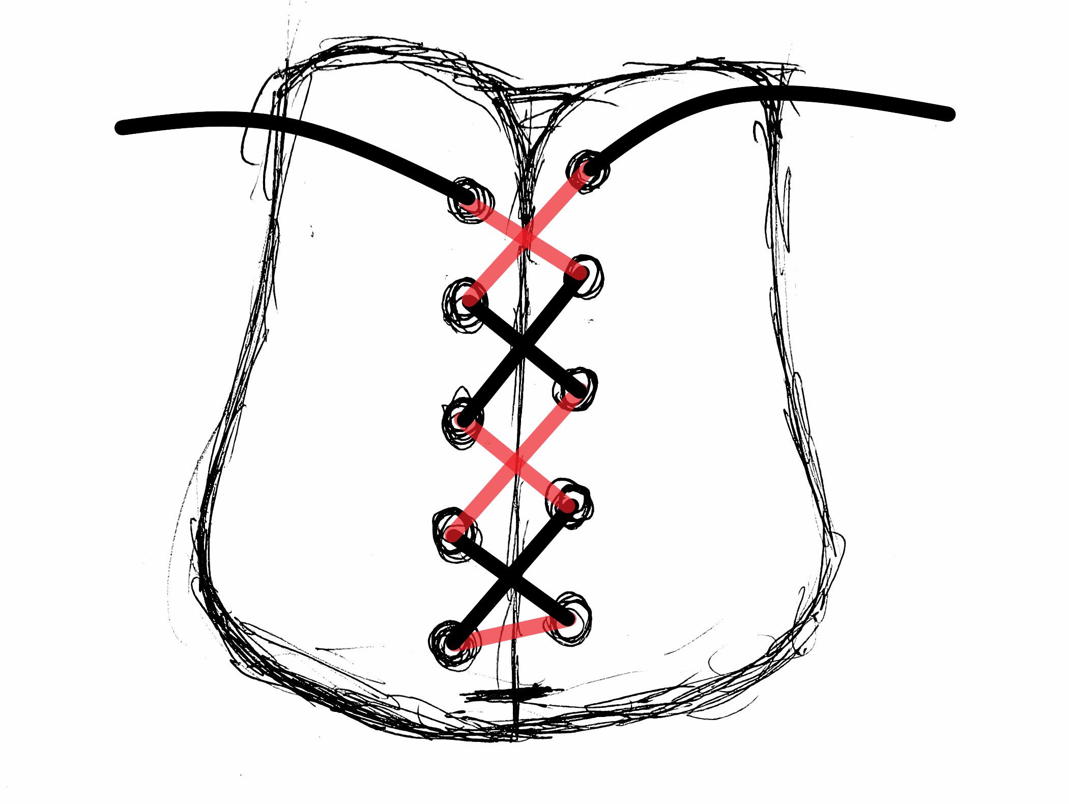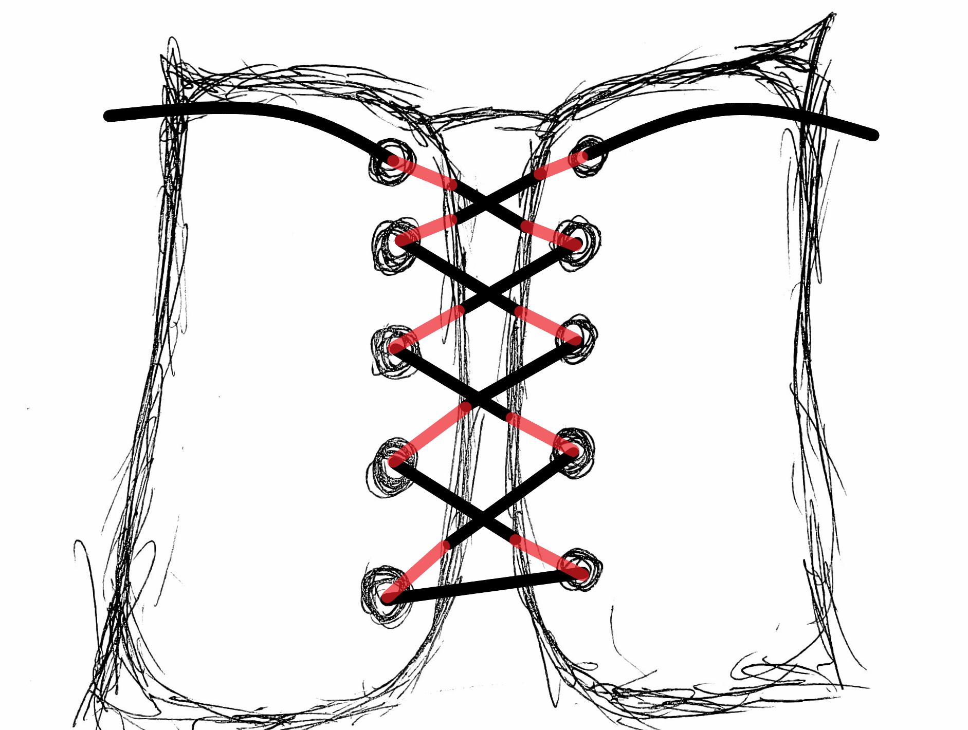 Sznurowanie krzyżykowe, ale nieco bardziej fantazyjne i eleganckie