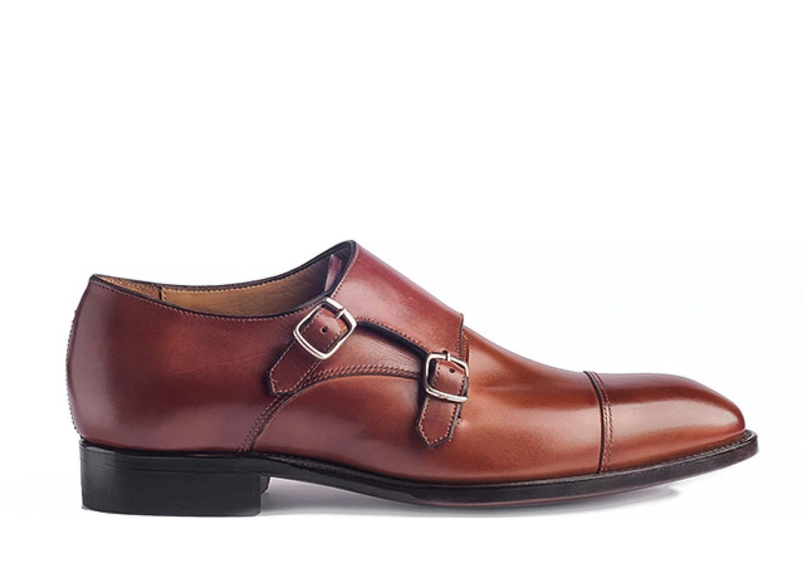 Poniżej derby ze skóry groszkowej na gumowej podeszwie Dainite Berwick 4170 oraz pięknie patynowany monki portugalskiej marki Carlos Santos 6942.