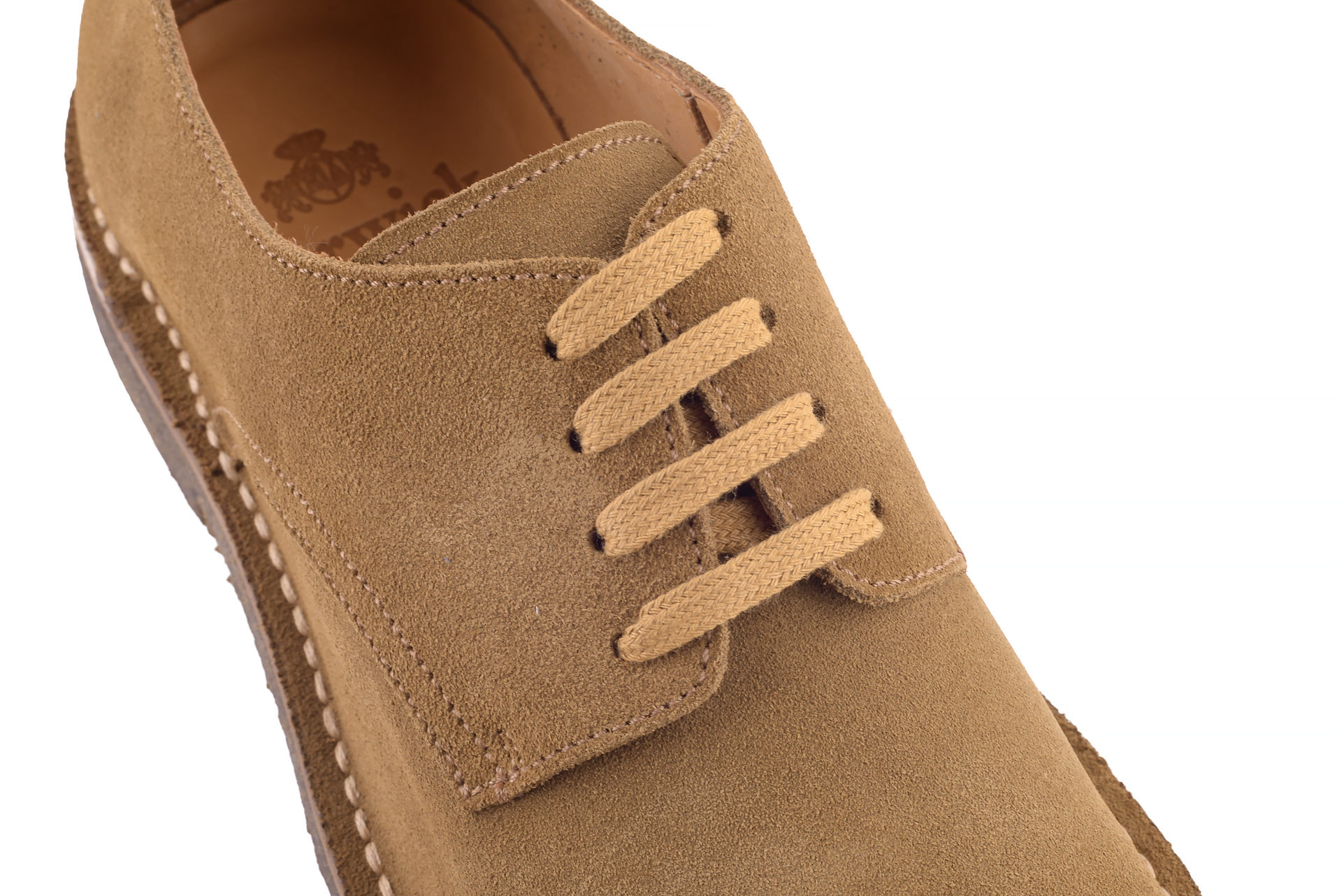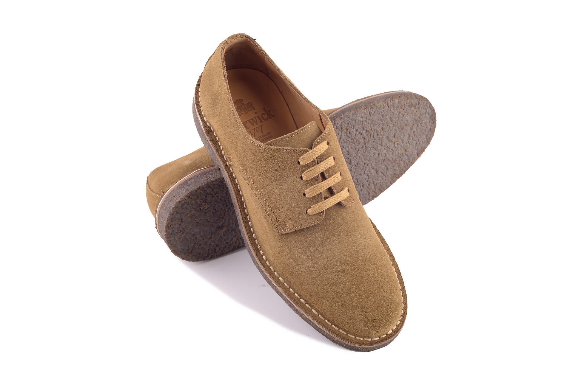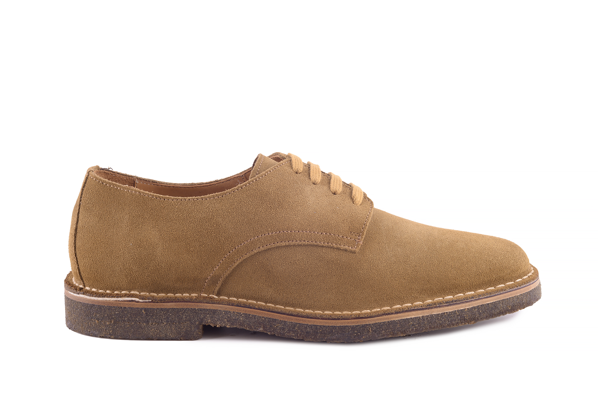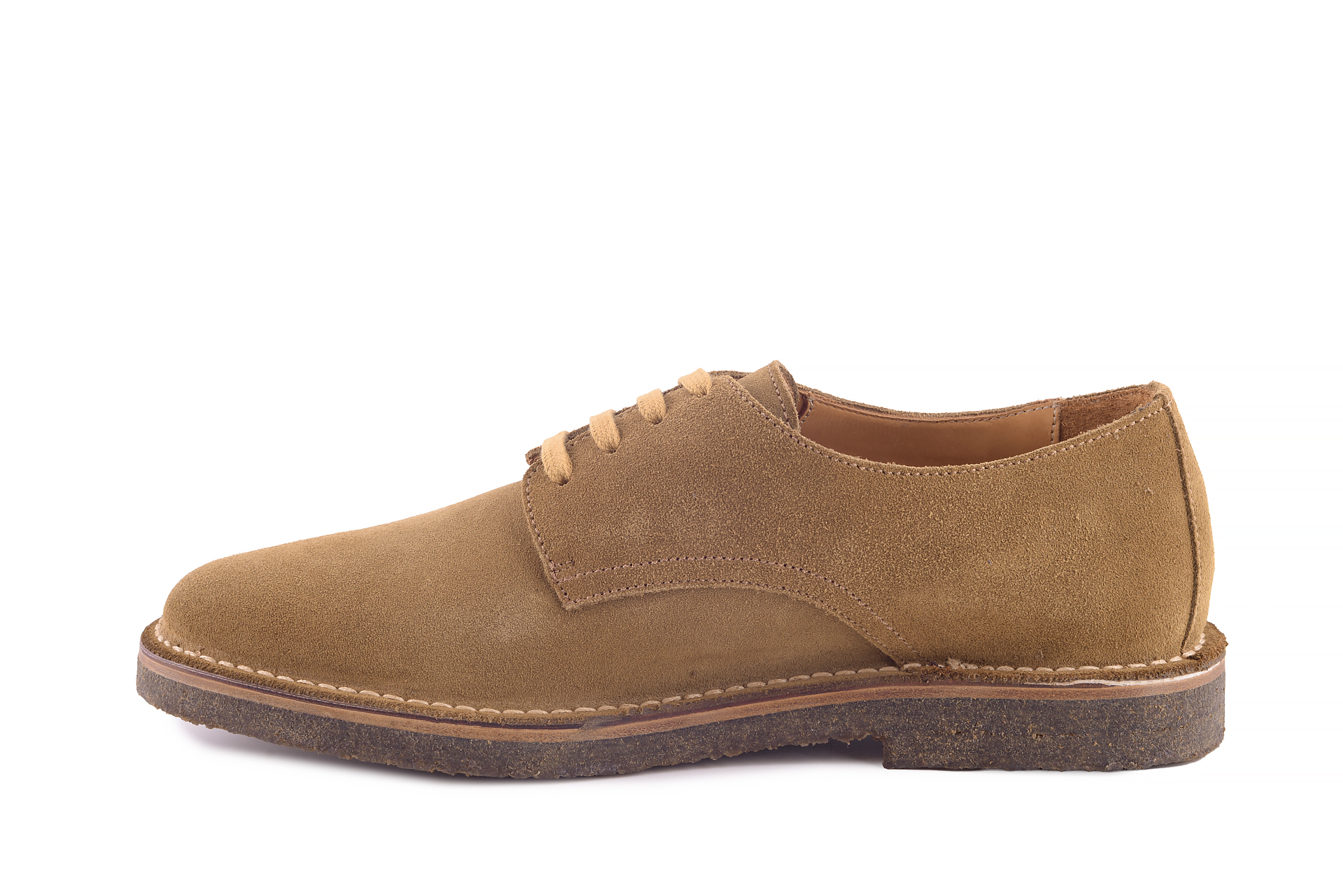 Krótki opis buta: Buty derby typu plain uszyte metodą stitch down wysokiej jakości zamszu cielęcego na gumowej podeszwie. Idealne połączenie klasycznej elegancji i komfortu.