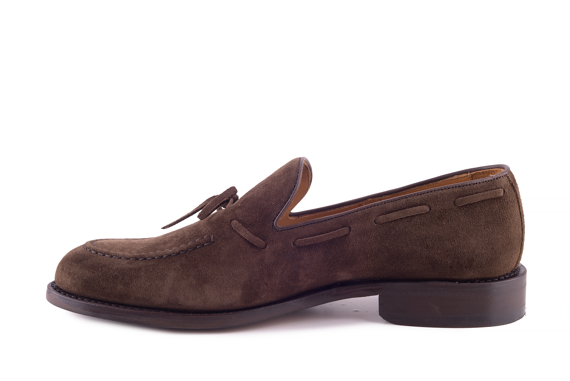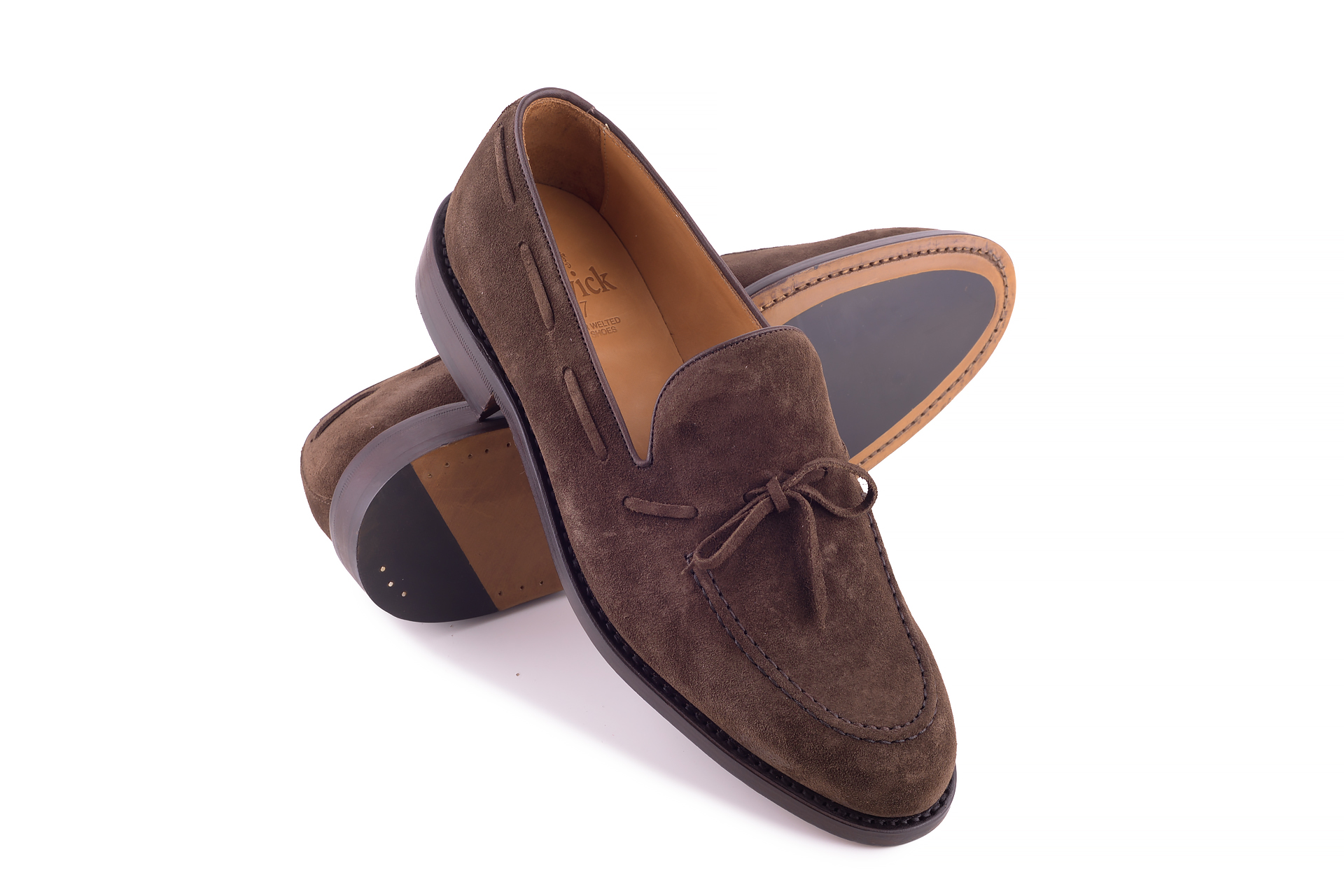 Zastosowanie: Loafersy ze skóry zamszowej to buty o charakterze od casualowego po półformalny. W kolorze jasnego brązu znakomicie pasują do spodni chino, sportowych marynarek i letnich garniturów w szarym lub granatowym kolorze.
