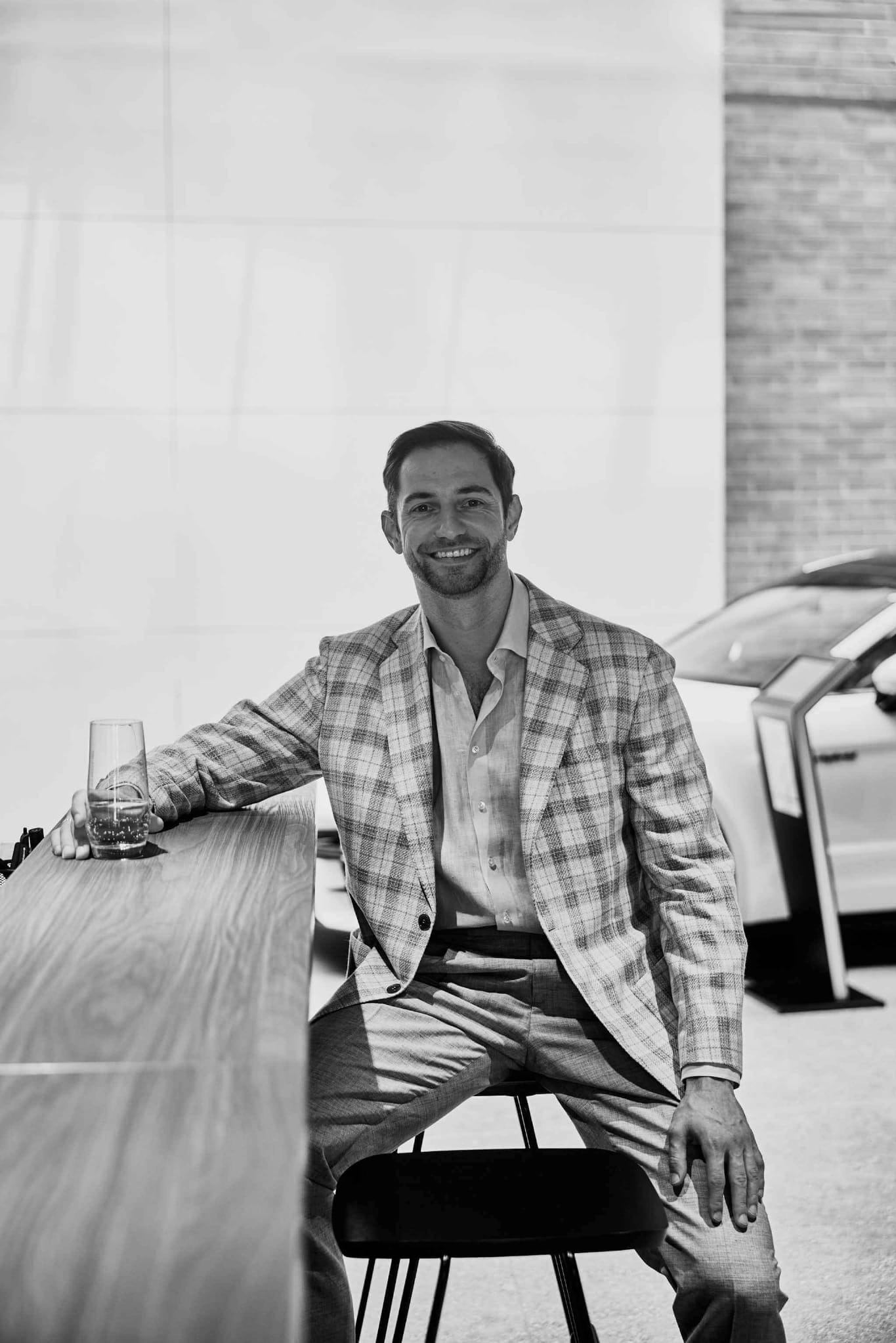 dobrze wygląda zarówno rozpięty pod szyją i z krawatem.